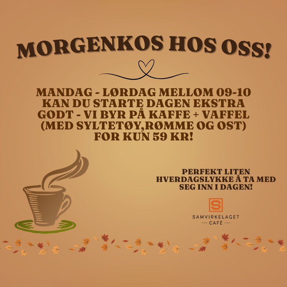 Mandag–lørdag kl. 09–10 får du kaffe og vaffel for bare 59 kr!